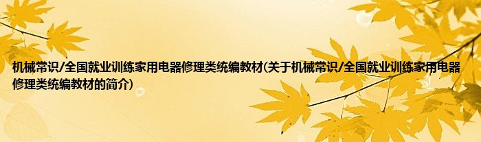 本文关于机械常识/全国就业训练家用电器修理类统编教材的简介就讲解完毕,希望对大家有所帮助。