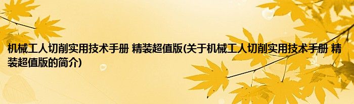 本文关于机械工人切削实用技术手册 精装超值版的简介就讲解完毕,希望对大家有所帮助。