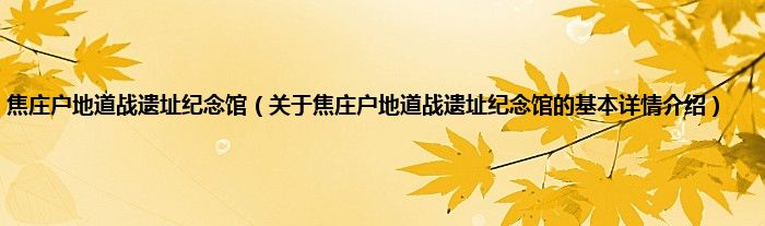本文关于焦庄户地道战遗址纪念馆的基本详情介绍就讲解完毕,希望对大家有所帮助。