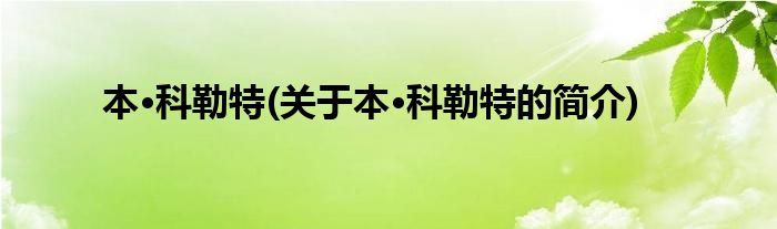 本文关于本·科勒特的简介就讲解完毕,希望对大家有所帮助。
