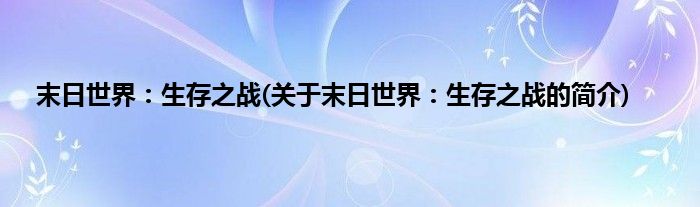 本文关于末日世界:生存之战的简介就讲解完毕,希望对大家有所帮助。