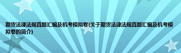 大家好,期货法律法规真题汇编及机考模拟卷,关于期货法律法规真题汇编及机考模拟卷的简介很多人还不知道,现在让我们一起来看看吧!