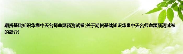 本文关于期货基础知识华泉中天名师命题预测试卷的简介就讲解完毕,希望对大家有所帮助。