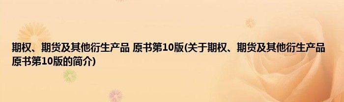 本文关于期权、期货及其他衍生产品 原书第10版的简介就讲解完毕,希望对大家有所帮助。