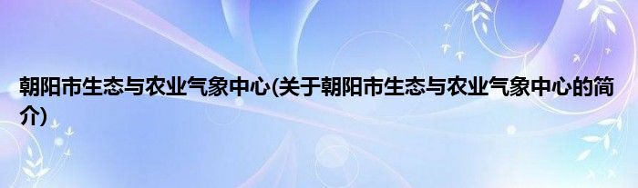 本文关于朝阳市生态与农业气象中心的简介就讲解完毕,希望对大家有所帮助。