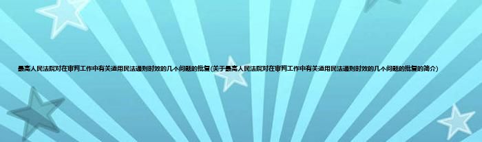 大家好,最高人民法院对在审判工作中有关适用民法通则时效的几个问题的批复,关于最高人民法院对在审判工作中有关适用民法通则时效的几个问题的批复的简介很多人还不知道,现在让我们一起来看看吧!