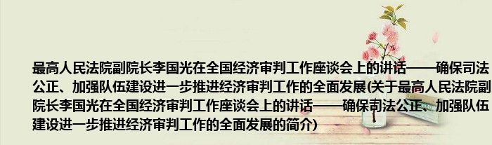 本文关于最高人民法院副院长李国光在全国经济审判工作座谈会上的讲话——确保司法公正、加强队伍建设进一步推进经济审判工作的全面发展的简介就讲解完毕,希望对大家有所帮助。