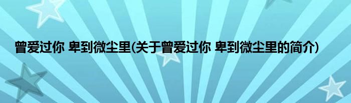 本文关于曾爱过你,卑到微尘里的简介就讲解完毕,希望对大家有所帮助。