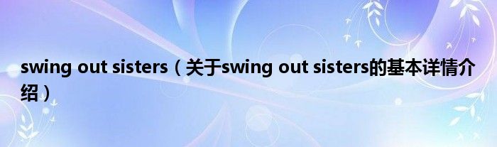 本文关于swing out sisters的基本详情介绍就讲解完毕,希望对大家有所帮助。