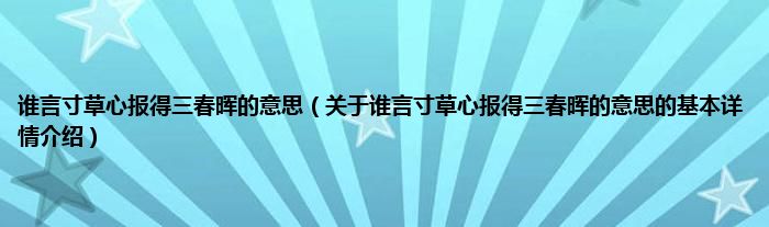本文关于谁言寸草心报得三春晖的意思的基本详情介绍就讲解完毕,希望对大家有所帮助。