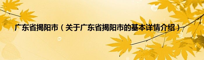 本文关于广东省揭阳市的基本详情介绍就讲解完毕,希望对大家有所帮助。