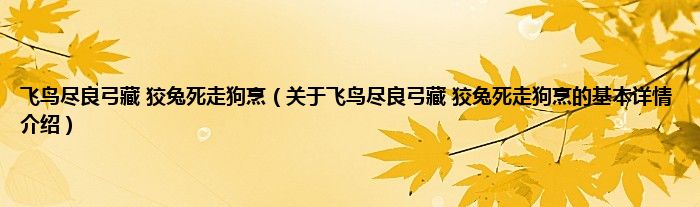 本文关于飞鸟尽良弓藏 狡兔死走狗烹的基本详情介绍就讲解完毕,希望对大家有所帮助。