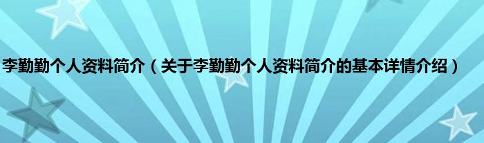 本文关于李勤勤个人资料简介的基本详情介绍就讲解完毕,希望对大家有所帮助。