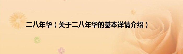 本文关于二八年华的基本详情介绍就讲解完毕,希望对大家有所帮助。