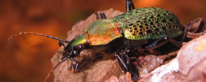 昆虫记金步甲称呼先是步甲大姐,然后是胖主妇,还有宰尸妇等。金步甲是一种食肉昆虫,属于昆虫纲鞘翅目。金步甲是消灭毛虫的能手,无愧于它园丁的称号;它保护菜园、花圃,是警觉的乡野卫士。有同类相食的习惯。成虫体长1~60毫米,一般中等大小,色泽幽暗,多为黑色、褐色,常带金属光泽。少数色鲜艳,有黄色花斑,体表光洁或披疏毛,有不同形状的微细刻纹。金步甲是毛虫的天敌,它们喜欢吃蜗牛、鳃角金龟、蚯蚓、毛虫等。雌性金步甲与雄性金步甲交尾之后,雌性金步甲便将已经没有用处的雄性金步甲开膛破腹,残忍地吞食。