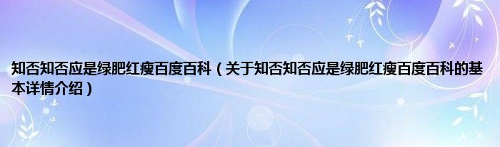 本文关于知否知否应是绿肥红瘦百度百科的基本详情介绍就讲解完毕,希望对大家有所帮助。