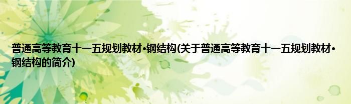 大家好,普通高等教育十一五规划教材·钢结构,关于普通高等教育十一五规划教材·钢结构的简介很多人还不知道,现在让我们一起来看看吧!