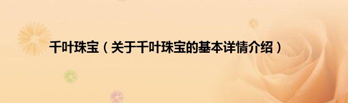 千叶珠宝(关于千叶珠宝的基本详情介绍)