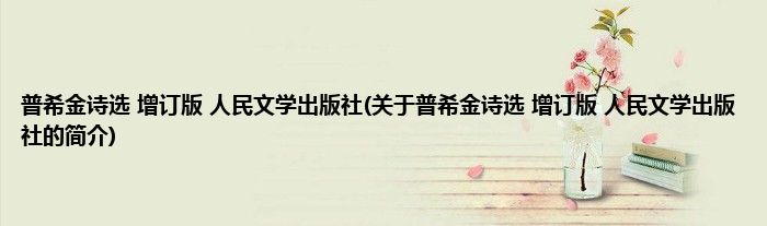 本文关于普希金诗选 增订版 人民文学出版社的简介就讲解完毕,希望对大家有所帮助。