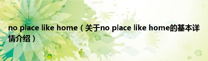 本文关于no place like home的基本详情介绍就讲解完毕,希望对大家有所帮助。