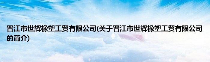 本文关于晋江市世辉橡塑工贸有限公司的简介就讲解完毕,希望对大家有所帮助。