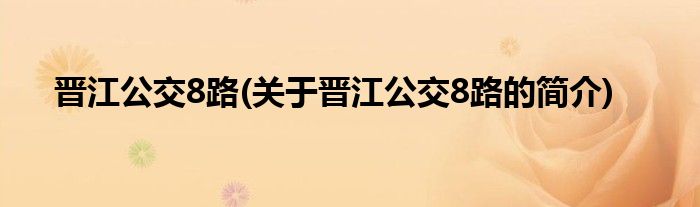 本文关于晋江公交8路的简介就讲解完毕,希望对大家有所帮助。