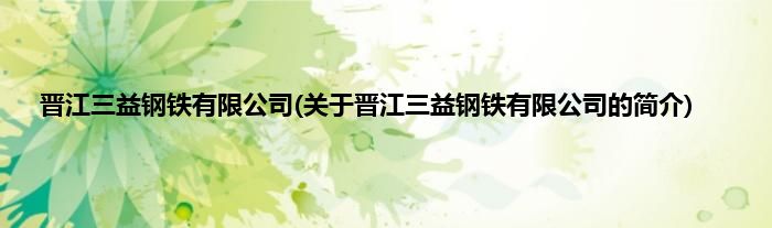 本文关于晋江三益钢铁有限公司的简介就讲解完毕,希望对大家有所帮助。