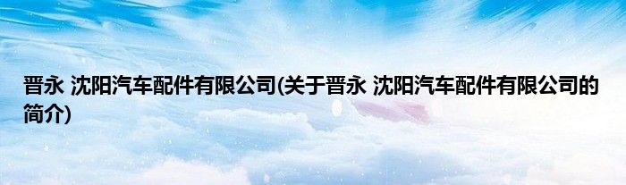 本文关于晋永 沈阳汽车配件有限公司的简介就讲解完毕,希望对大家有所帮助。