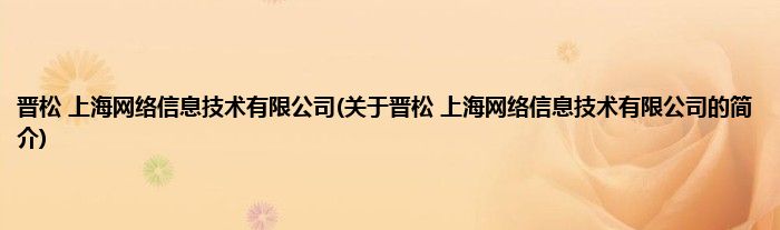 大家好,晋松 上海网络信息技术有限公司,关于晋松 上海网络信息技术有限公司的简介很多人还不知道,现在让我们一起来看看吧!