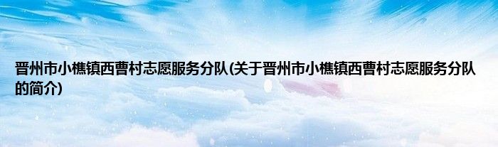1、 晋州市小樵镇西曹村志愿服务分队是由晋州市志愿服务支队领导下的志愿团体。