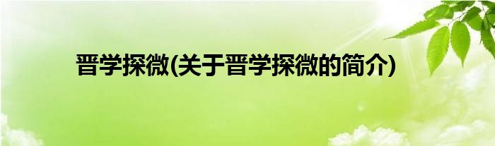 本文关于晋学探微的简介就讲解完毕,希望对大家有所帮助。