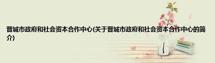 本文关于晋城市政府和社会资本合作中心的简介就讲解完毕,希望对大家有所帮助。