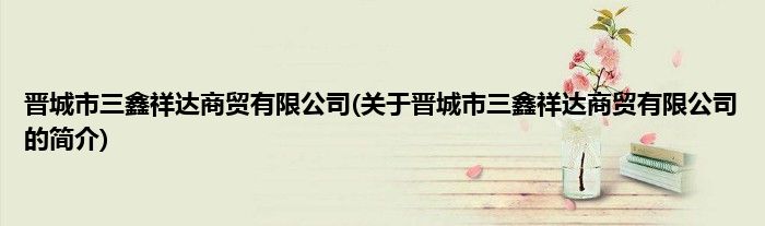 本文关于晋城市三鑫祥达商贸有限公司的简介就讲解完毕,希望对大家有所帮助。