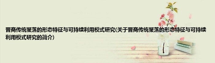 本文关于晋商传统聚落的形态特征与可持续利用模式研究的简介就讲解完毕,希望对大家有所帮助。