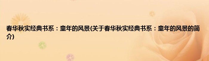 本文关于春华秋实经典书系:童年的风景的简介就讲解完毕,希望对大家有所帮助。