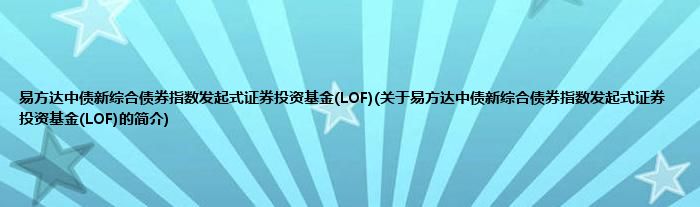 本文关于易方达中债新综合债券指数发起式证券投资基金(LOF)的简介就讲解完毕,希望对大家有所帮助。