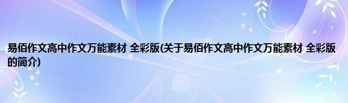 本文关于易佰作文高中作文万能素材 全彩版的简介就讲解完毕,希望对大家有所帮助。