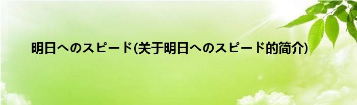 大家好,明日へのスピード,关于明日へのスピード的简介很多人还不知道,现在让我们一起来看看吧!