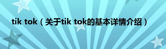本文关于tik tok的基本详情介绍就讲解完毕,希望对大家有所帮助。