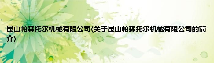 本文关于昆山帕森托尔机械有限公司的简介就讲解完毕,希望对大家有所帮助。