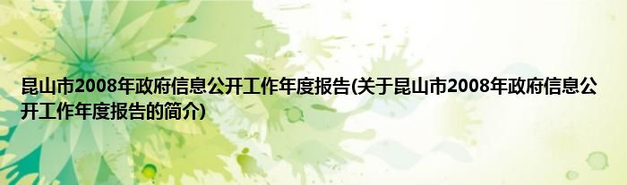 本文关于昆山市2008年政府信息公开工作年度报告的简介就讲解完毕,希望对大家有所帮助。
