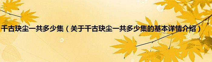 本文关于千古玦尘一共多少集的基本详情介绍就讲解完毕,希望对大家有所帮助。
