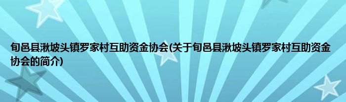 旬邑县湫坡头镇罗家村互助资金协会(关于旬邑县湫坡头镇罗家村互助资金协会的简介)