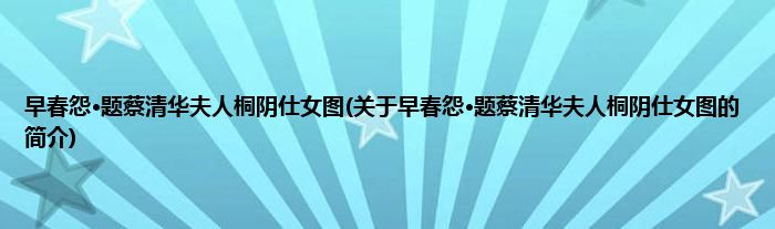 本文关于早春怨·题蔡清华夫人桐阴仕女图的简介就讲解完毕,希望对大家有所帮助。