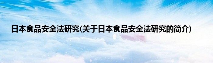 大家好,日本食品安全法研究,关于日本食品安全法研究的简介很多人还不知道,现在让我们一起来看看吧!