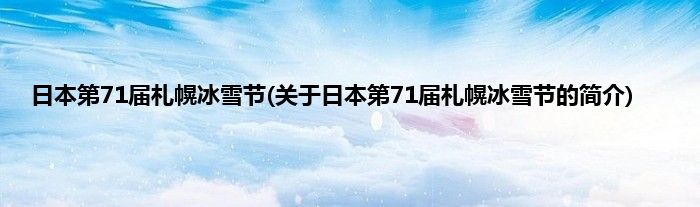 本文关于日本第71届札幌冰雪节的简介就讲解完毕,希望对大家有所帮助。