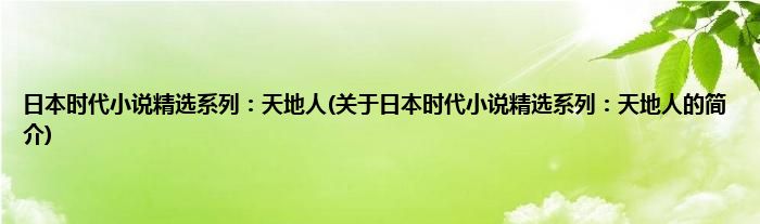 本文关于日本时代小说精选系列:天地人的简介就讲解完毕,希望对大家有所帮助。