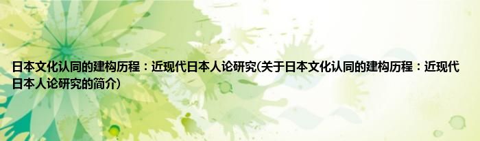 大家好,日本文化认同的建构历程:近现代日本人论研究,关于日本文化认同的建构历程:近现代日本人论研究的简介很多人还不知道,现在让我们一起来看看吧!