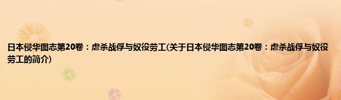 1、 《日本侵华图志第20卷:虐杀战俘与奴役劳工》是2015年山东画报出版社出版的图书。