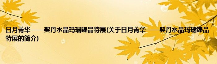 本文关于日月菁华——契丹水晶玛瑙臻品特展的简介就讲解完毕,希望对大家有所帮助。